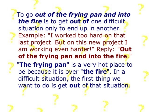 Out Of The Fire Into The Frying Pan Meaning のギャラリー