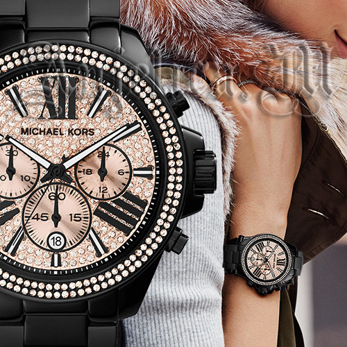 Michael Kors Black Wren Chronograph Watch With Rose Gold Glitz Dial Mk 5879 Imported